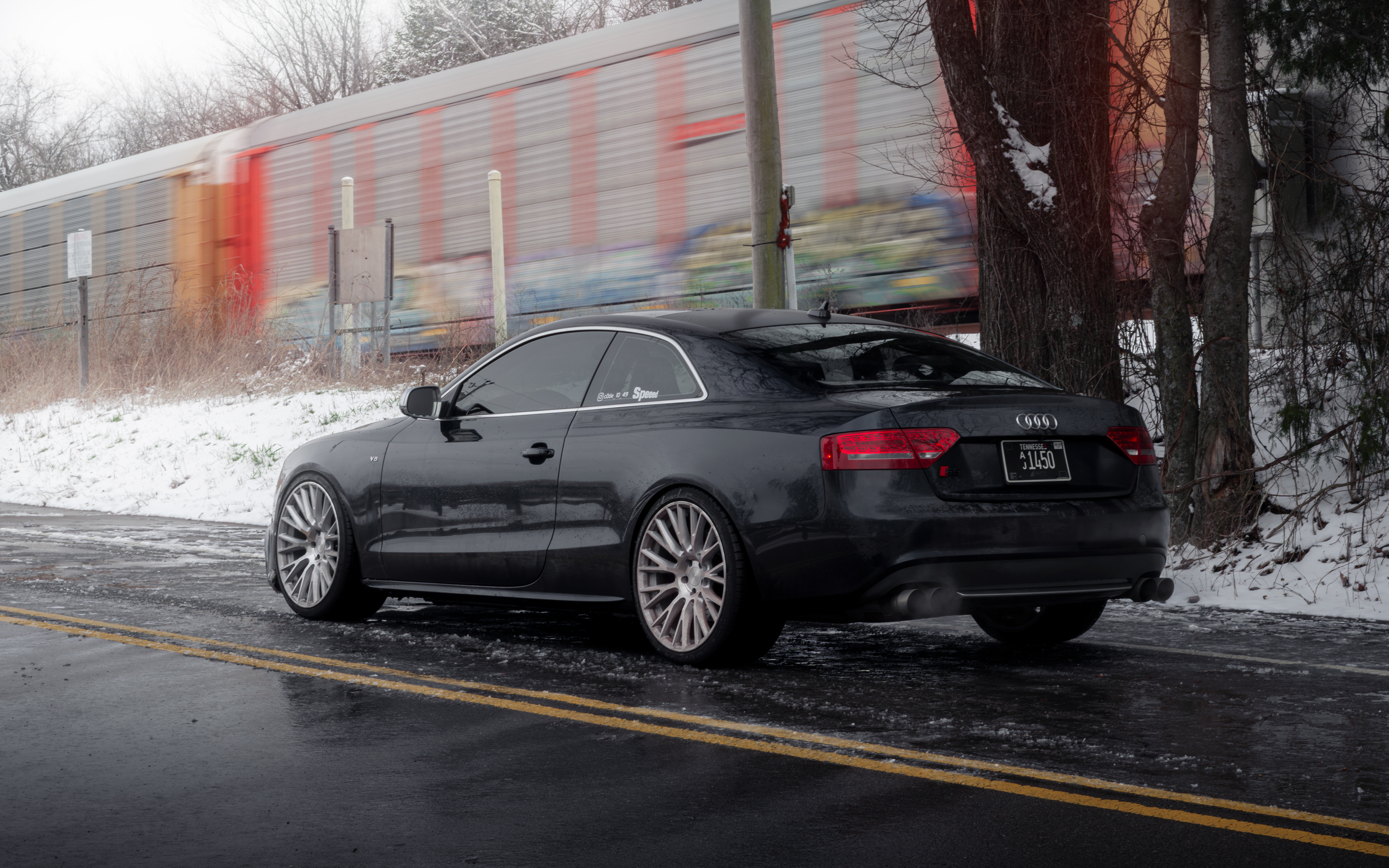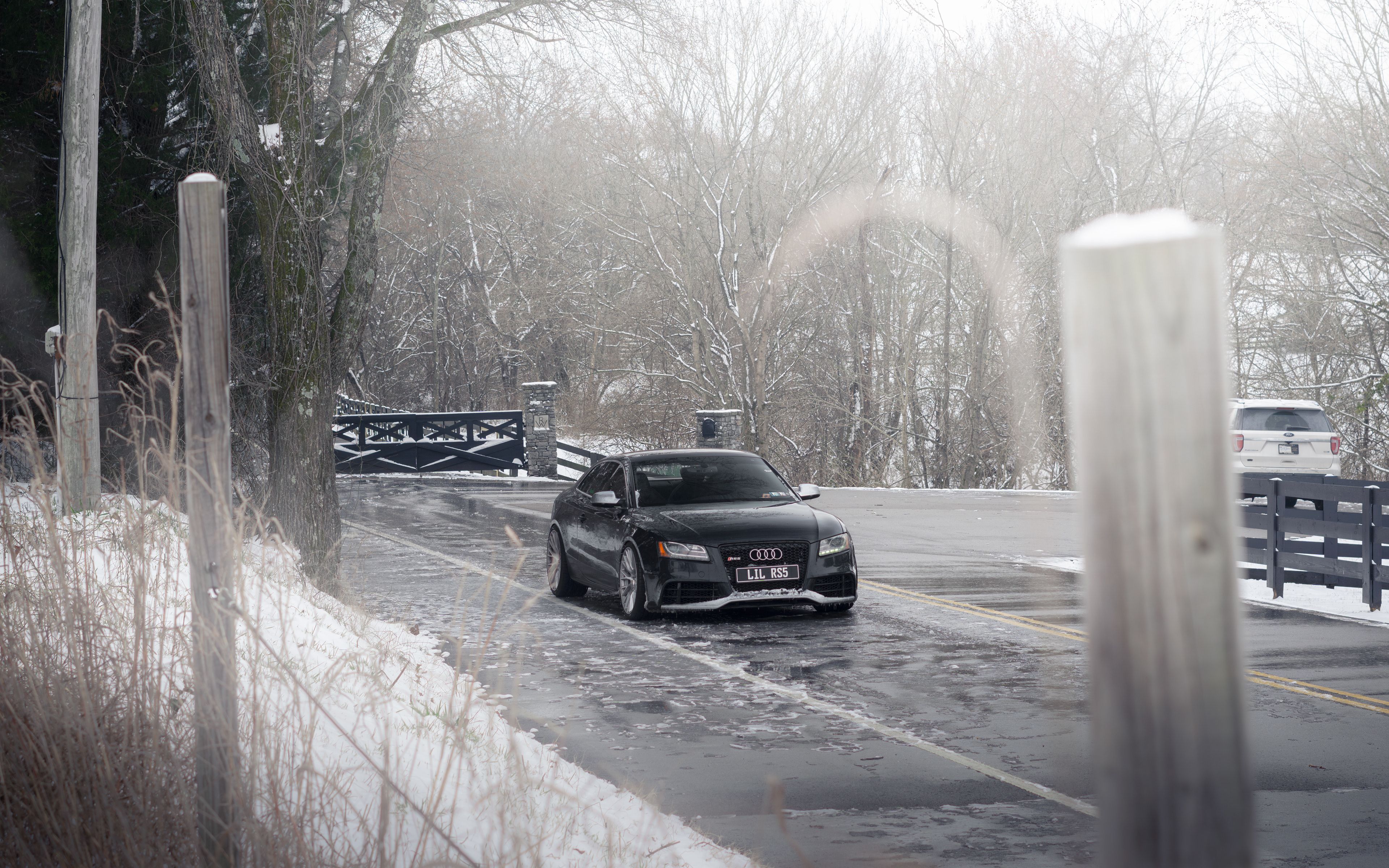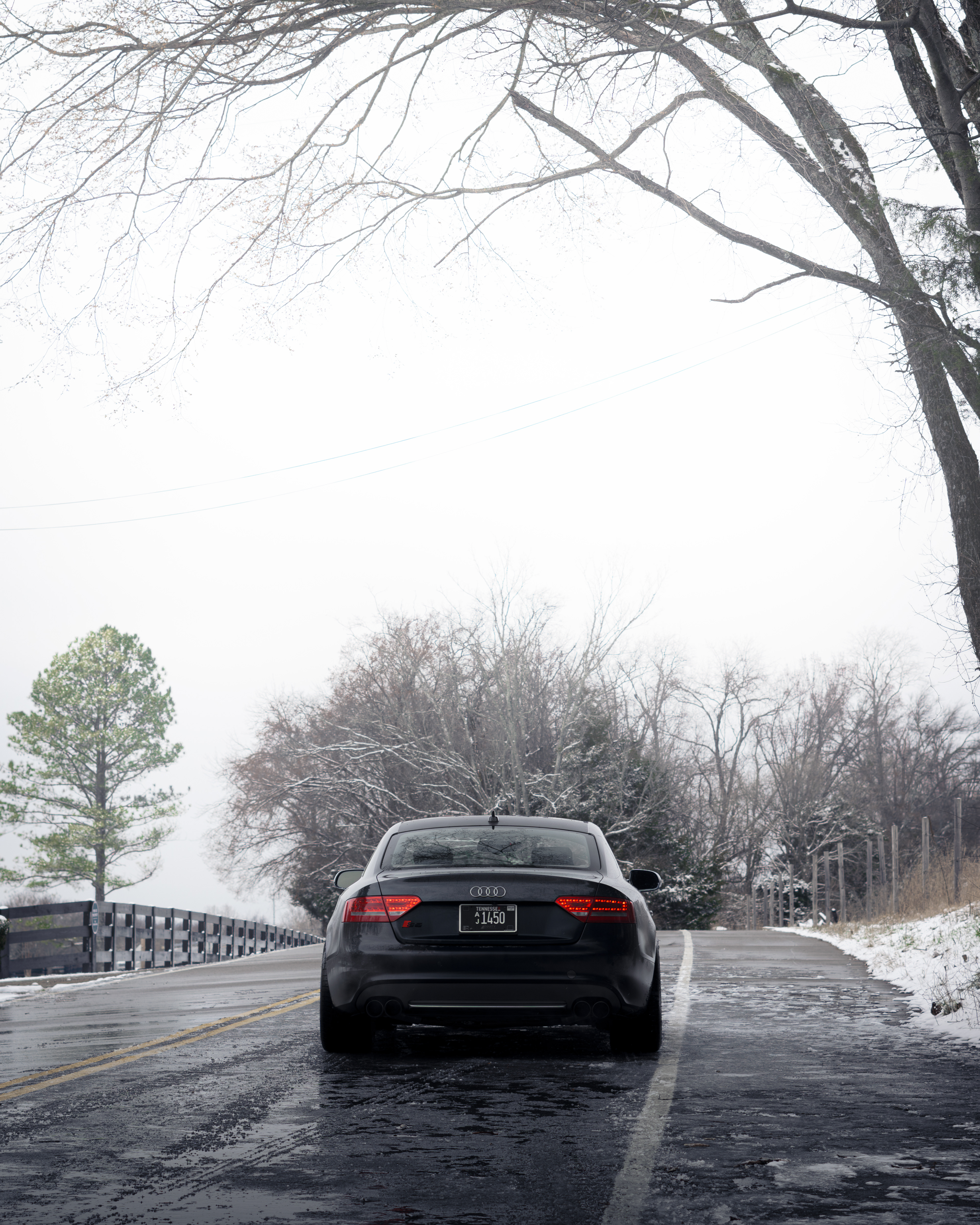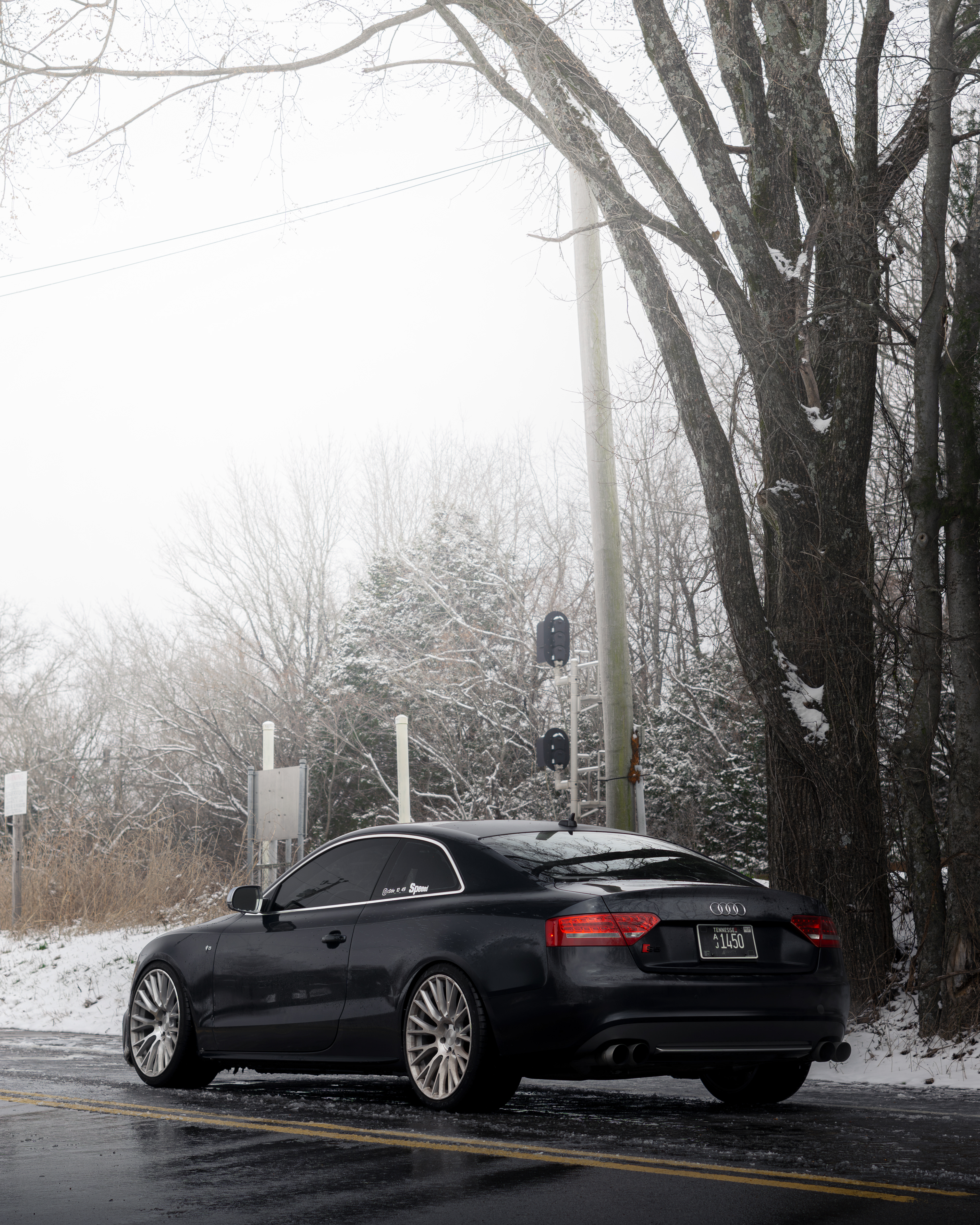 Captured another S5 Audi in a picturesque winter snow scene near train tracks. Leveraged the bright, reflective qualities of the snow and applied bloom effects to create a clean, high-key aesthetic that highlights the vehicle's design.