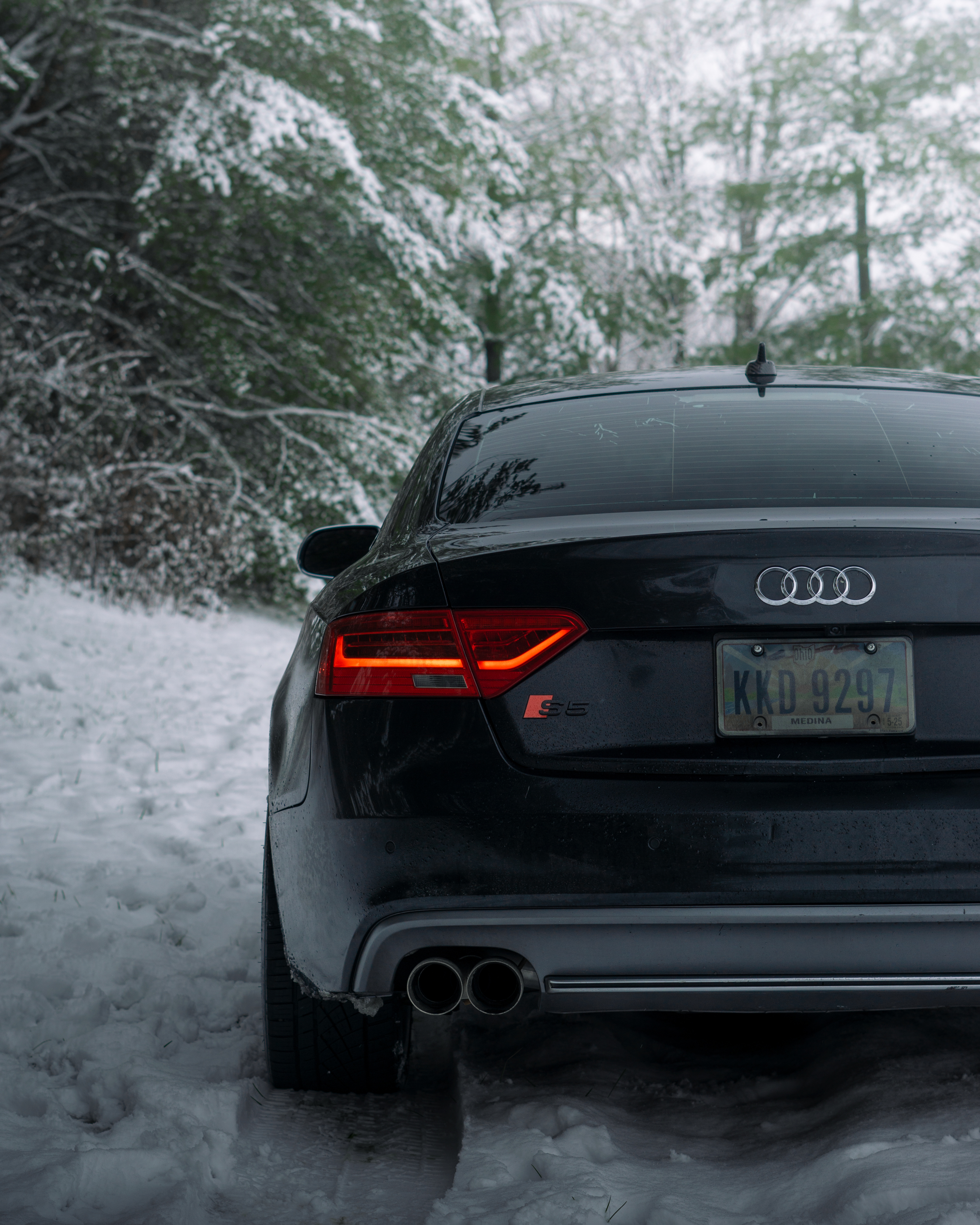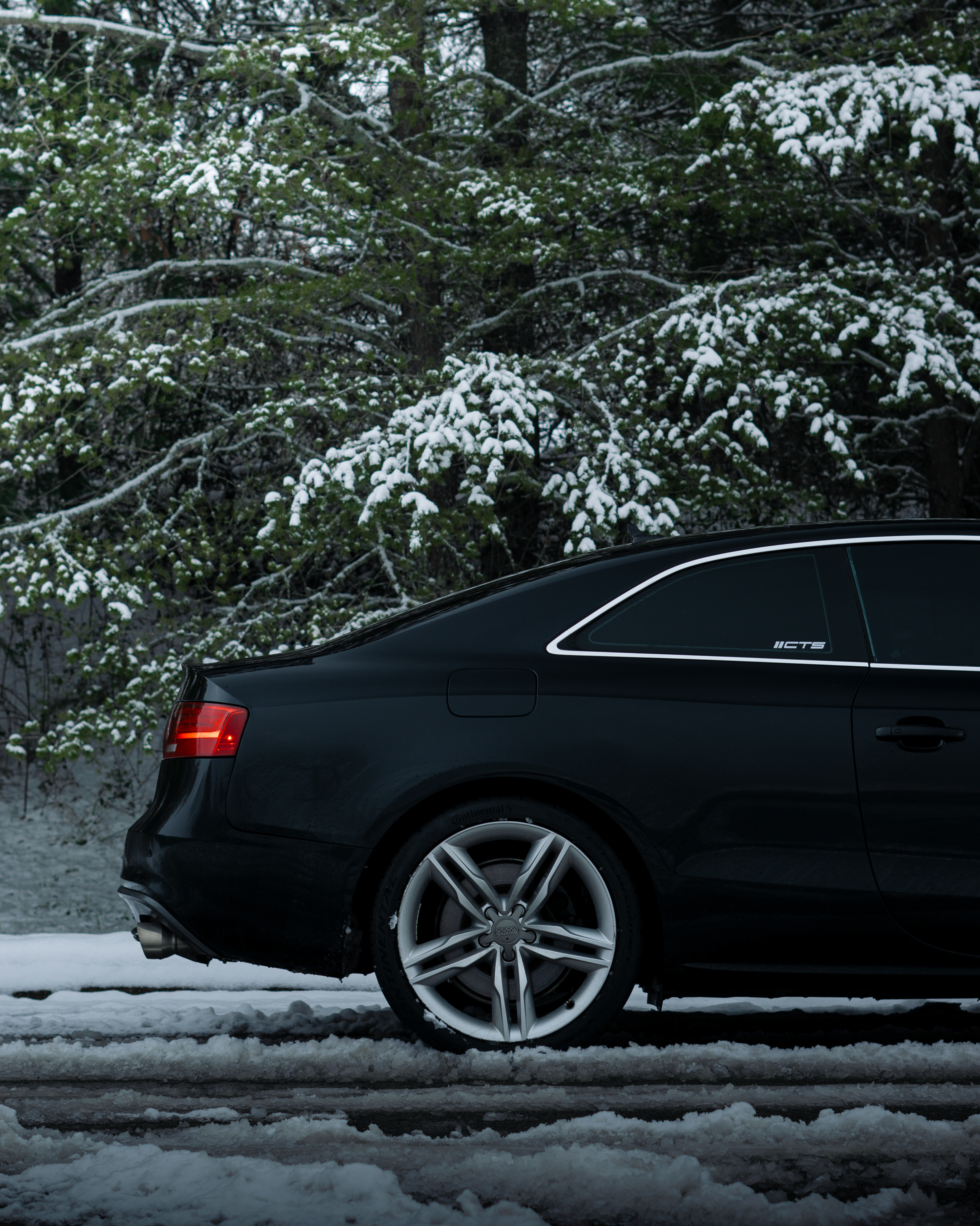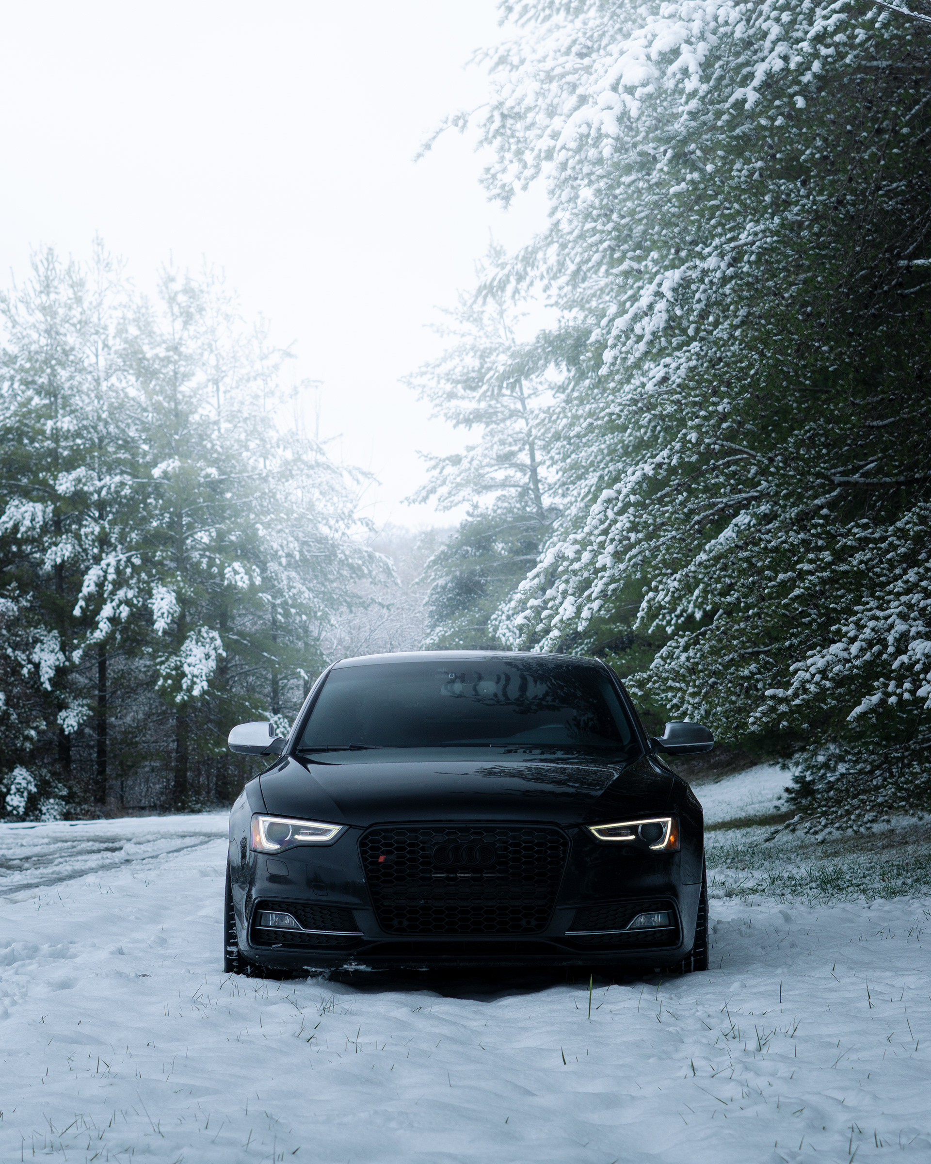 Photographed an S5 Audi in a winter snow setting amidst trees, capturing its elegance against a bright, pristine backdrop. Utilized natural winter lighting conditions and applied bloom effects to achieve a soft, ethereal visual quality.